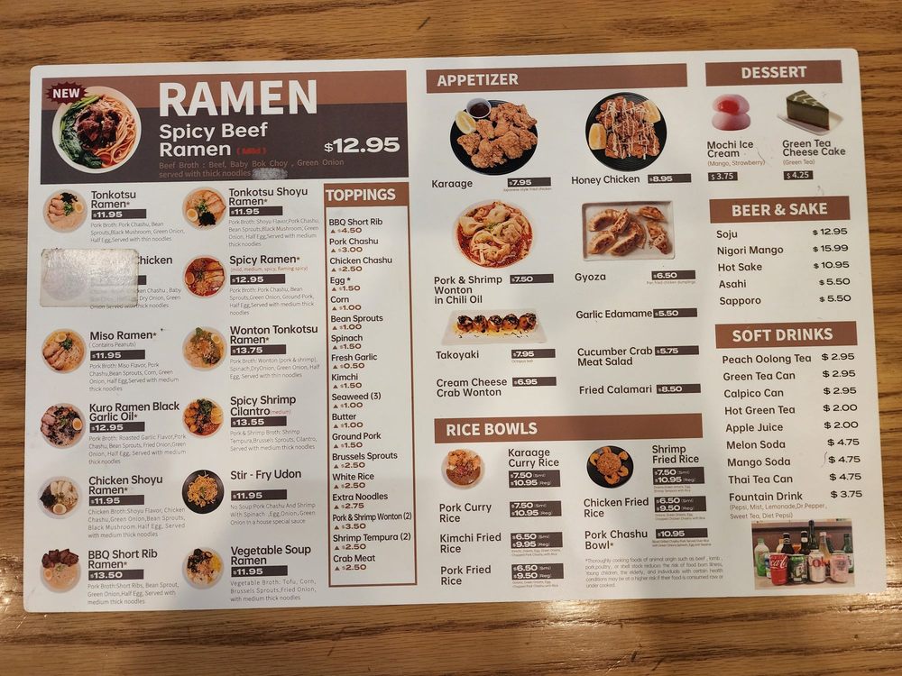 Highlights of the menu include their signature BBQ Short Rib Ramen and fiery Crazy Spicy Ramen, each accompanied by freshly made noodles, a half egg, and a burst of flavor. Don't miss the delectable Karaage and Takoyaki appetizers, perfect for sharing. Guests appreciate not only the fresh, high-quality ingredients but also the accommodating staff, who ensure a delightful dining experience.